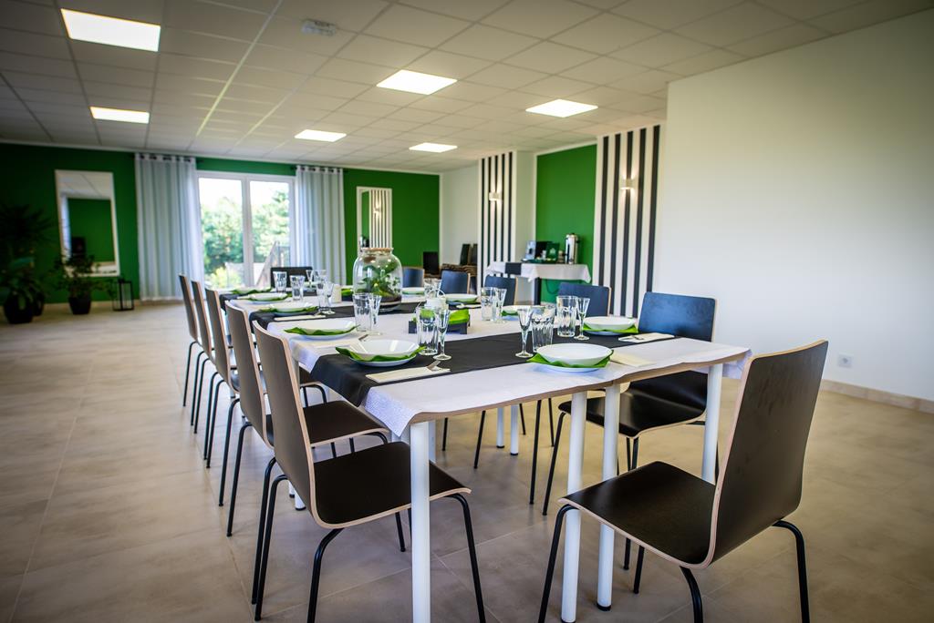 Na parterze została udostępniona elegancka sala biesiadna. – Jest przystosowana do organizacji przyjęć okolicznościowych. Wychodzi się z niej bezpośrednio na taras z tyłu gościńca – informuje gospodarz. – Zapraszamy do rezerwacji, chętnie pomożemy w zorganizowaniu wypoczynku lub przyjęcia.