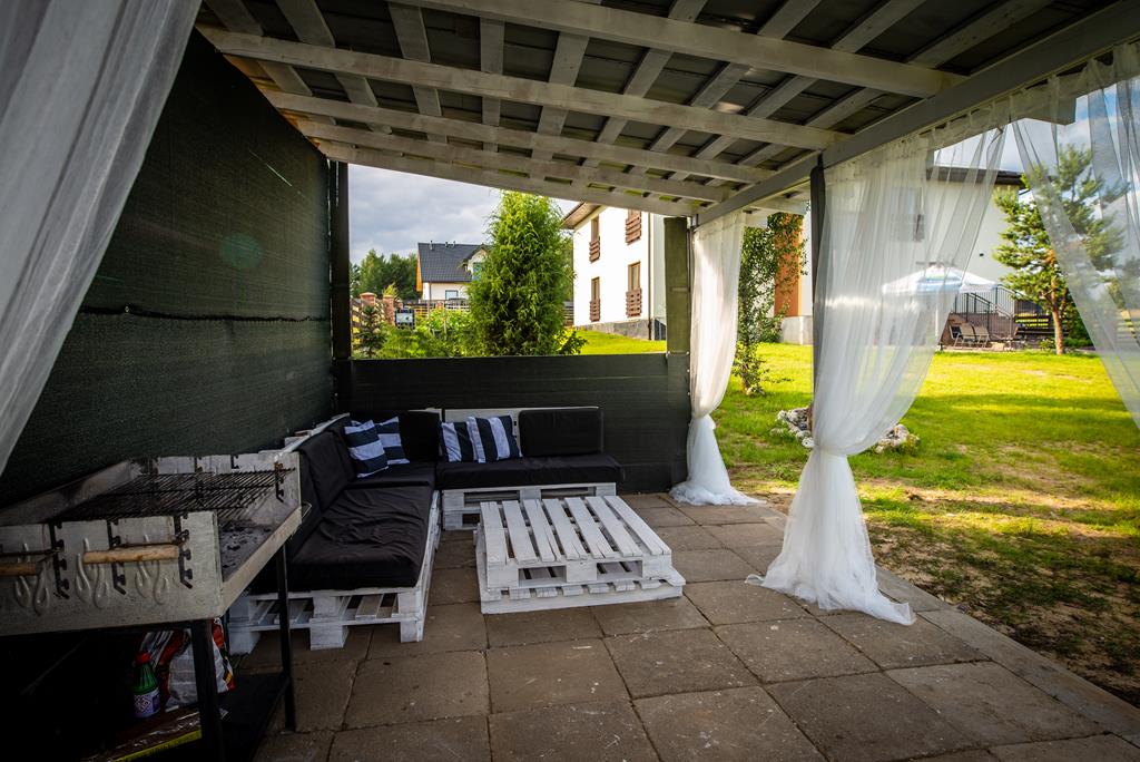 Gościniec otacza rozległe podwórko z zagospodarowanym ogrodem. Drzewa owocowe i krzewy, kwiaty i jurajskie sosny dodają uroku temu miejscu. Zaskoczeniem dla gości mogą się okazać zielone skrzynki, w których rosną warzywa i zioła. Jeśli tylko mają ochotę, mogą korzystać z tego podręcznego zieleniaka. Na posesji wydzielono parkingi oraz przestrzenie do wypoczynku. Jest altana, grill, miejsce na ognisko. Powodzeniem wśród najmłodszych z pewnością będzie się cieszył plac zabaw, rozkładany basen na czas letnich upałów oraz trampolina.