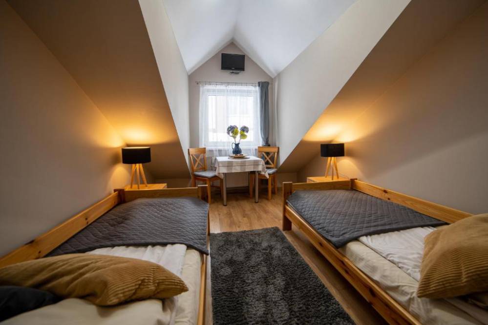 Dysponujemy 13 pokojami 2- osobowymi, 1 pokojem 3-osobowym, 1 pokojem typu studio 4-6 osobowym.