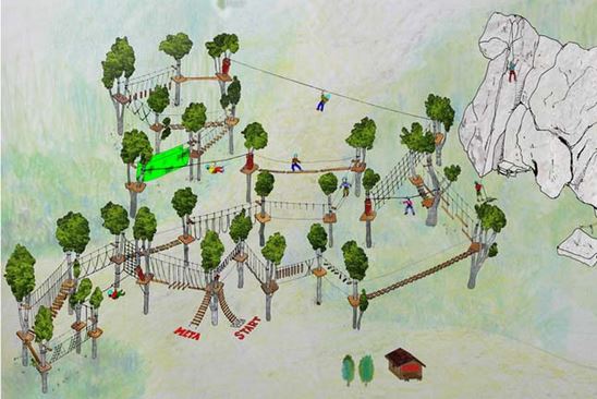 Park Linowy w Podzamczu zlokalizowany jest u stóp Zamku Ogrodzieniec, który jest największym i najpopularniejszym zamkiem na Jurze Krakowsko-Częstochowskiej. Obiekt powstał w 2006 roku i do dnia dzisiejszego został kilkakrotnie rozbudowany.