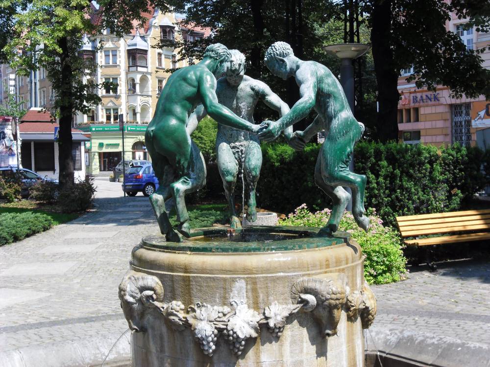 Gliwice, fontanna "Tańczące fauny" przed Urzędem Miasta, ponoć jeden z symboli {niedoszłego} Trójmiasta Górnośląskiego, foto Edward Wieczorek