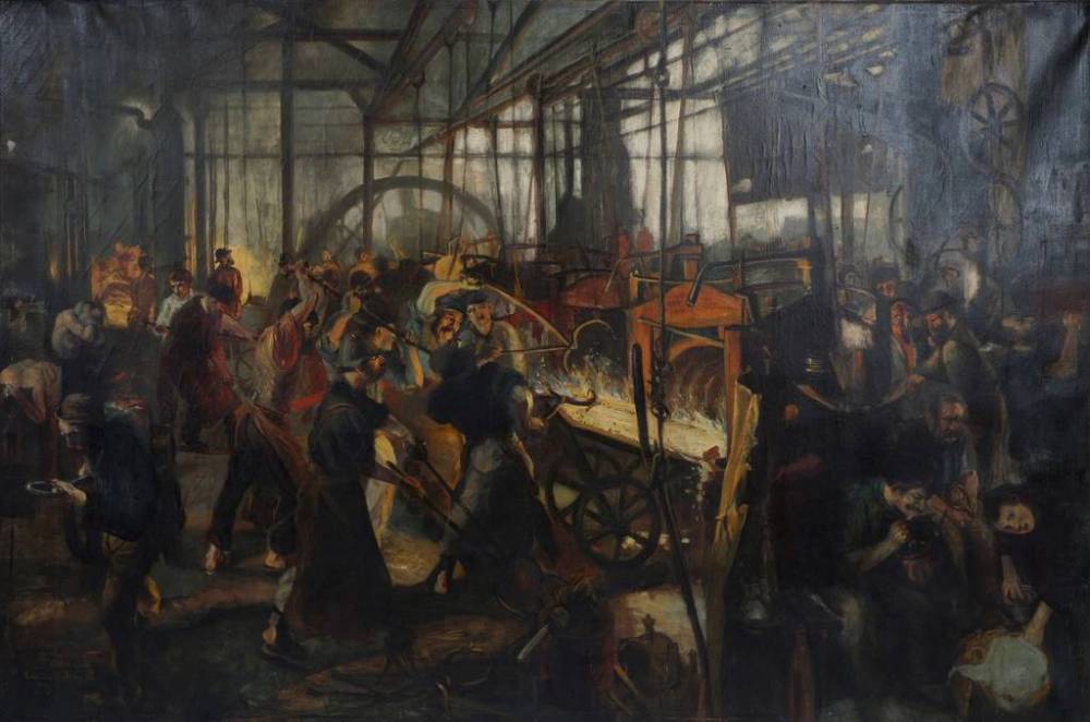 Obraz Adolfa Mentzla  "Walcownia żelaza" , przedstawiający hutę "Królewską"  ok. 1875 r.