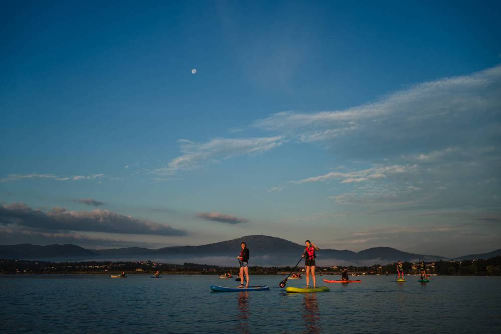Górskie szczyty otaczające Jezioro Żywieckie tworzą wyjątkowy klimat! Pływając po tafli jeziora możesz cieszyć się malowniczymi widokami na Beskidy, jednocześnie wsłuchując się w relaksujący dźwięk fal! Czy może być coś lepszego? Oferta obejmuje kilka wariantów m. in. SUP, czyli najszybciej rozwijający się sport w Europie, oraz dla miłośników dziarskiego machania wiosłem oferujemy najwyższej klasy kajaki dwuosobowe – lekkie, przystosowane do bezpiecznego pływania po jeziorze.