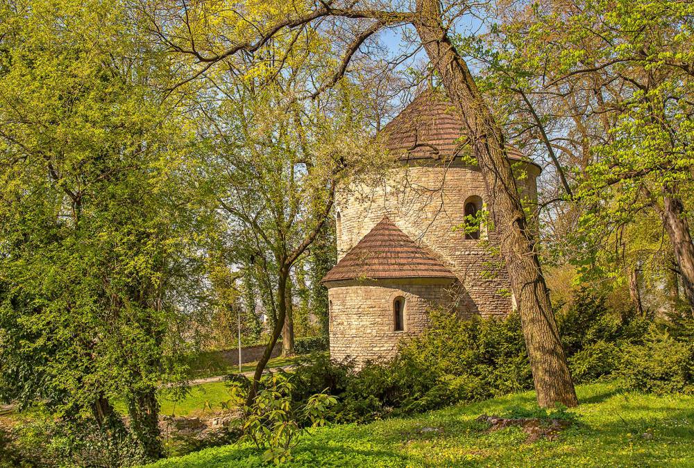 które zachowało średniowieczny charakter. Wąskie uliczki, zdobne kamienice i urocze kawiarnie sprawiają, że spacer po Cieszynie to prawdziwa przyjemność. A szczególnym miejscem w historycznej części miasta jest oczywiście Wzgórze Zamkowe, z pozostałościami znaczącego niegdyś piastowskiego grodu. Najbardziej rozpoznawalny element i zarazem symbol Cieszyna to romańska Rotunda z XI wieku, jedna z najstarszych świątyń chrześcijańskich w Polsce. Znana niemal każdemu Polakowi, gdyż jej wizerunek widnieje na banknocie o nominale 20 zł. Surowe wnętrze rotundy można zobaczyć na własne oczy, po wykupieniu biletu w pobliskiej Wieży Piastowskiej. Tam czeka ogromny klucz, którym można samodzielnie otworzyć wrota zacnej budowli. Sama wieża, gotycka i kamienna, to najwyższy obiekt wzgórza. W ramach tego samego biletu można zdobyć jej szczyt i podziwiać piękną panoramę miasta oraz okolicznych szczytów górskich.