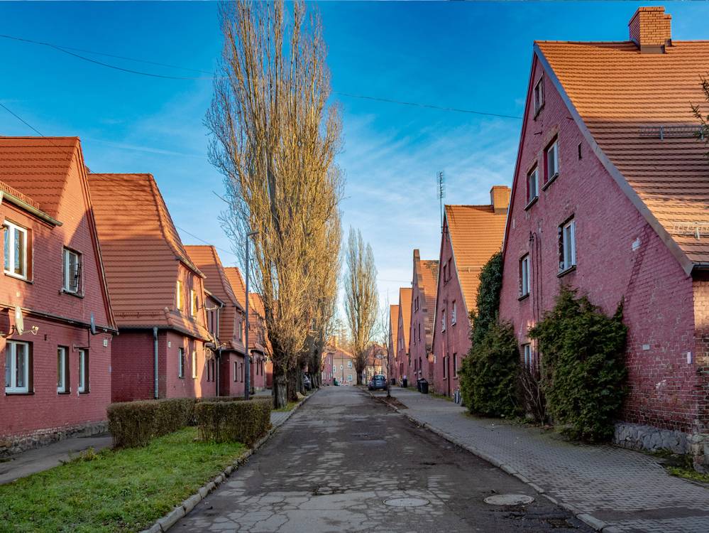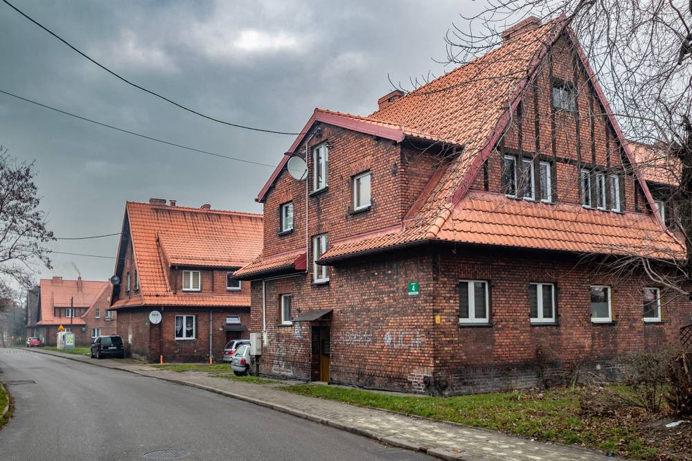 Na początku XX wieku właściciele huty i kopalni postanowili zbudować nowoczesne osiedle mieszkaniowe. Tak powstał piękny zespół ceglanej zabudowy o przemyślanym układzie urbanistycznym, zaprojektowany z myślą o wygodzie i codziennych potrzebach rodzin robotniczych. Pierwsze budynki zaczęto wznosić w 1907 roku, a później dzielnica rozwijała się w dwóch znaczących etapach. Do dziś zachowało się mnóstwo obiektów, które są ustawione równo wzdłuż gęstej siatki ulic. Domy są duże, wielorodzinne, trzykondygnacyjne i nakryte dachami naczółkowymi.