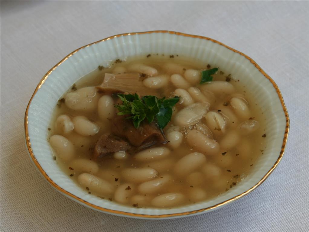Fasolę namoczoną ugotować do miękkości i odstawić na bok. Wędzone kości schabowe, gotować ok. godziny dodając przyprawy. Wyjąć kości i obrane z nich mięso wrzucić do wywaru i gotować dalej na małym ogniu. Przesmażyć boczek z cebulką i dodać do wywaru. Wywar zalać żurkiem z mąki żurkowej i gotować jeszcze 10 – 15 minut, pod koniec dodać potarty w dłoniach majeranek i ugotowaną fasolę.