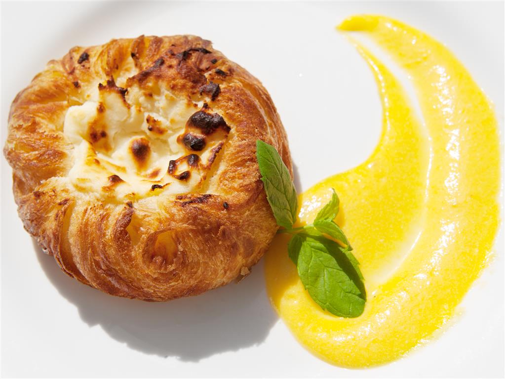 Ciastko pół francuskie z bryndzą: jajka, drożdże, sól, cukier, wodę i mąkę łączymy razem, wyrabiamy ciasto przez ok. 10 min., do uzyskania gładkiej struktury. Gotowe ciasto przekładamy na stolnice, w środek ciasta zamykamy cała margarynę.