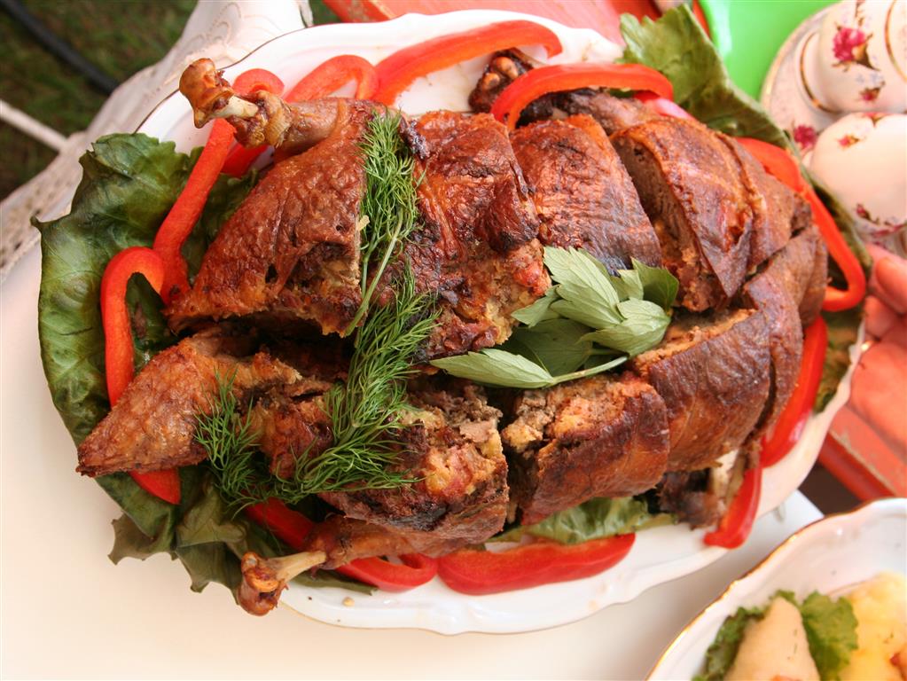 Z kaczuchy wszystkie kości wybieramy, Zaprawą z każdej strony kaczkę nacieramy. Odkładamy ją na noc do miejsca zimnego, I niech sobie odpocznie do dnia następnego.