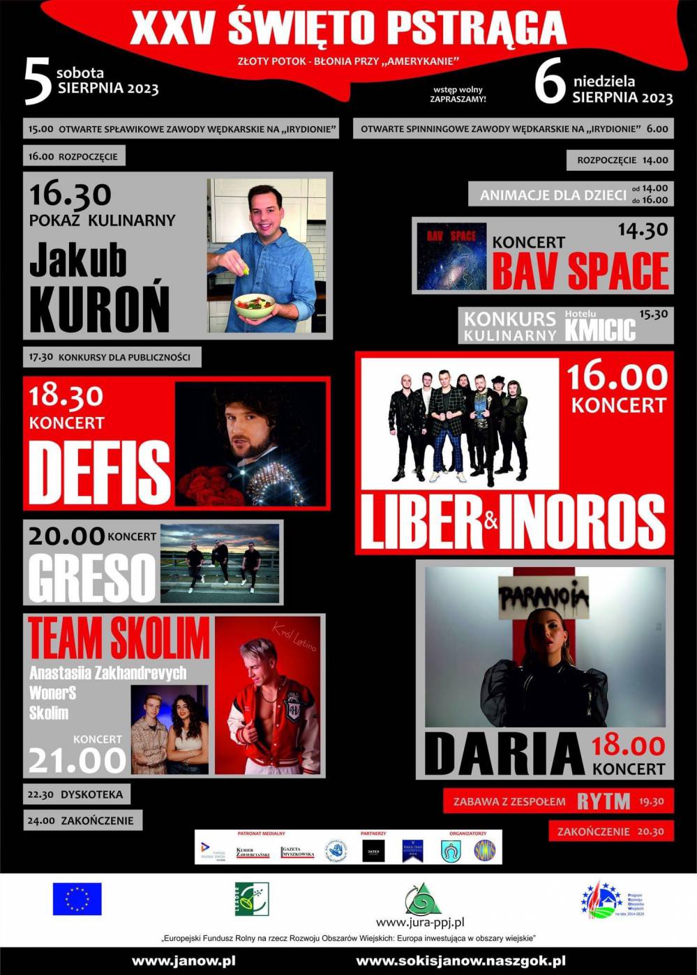 Impreza plenerowa o charakterze rodzinnym. Konkursy i popisy kulinarne związane z potrawami z pstrąga (Pstrągarnia w Złotym Potoku jest jedną z najstarszych w Europie). Spotkanie z "gotującą" gwiazdą, liczne koncerty muzyczne, widowisko dla dzieci, konkursy dla publiczności otwarty konkurs płukania złota.