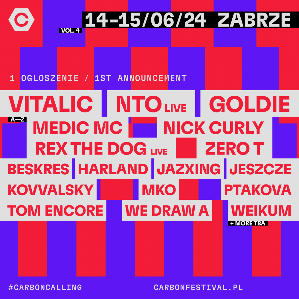 W tym roku w Zabrzu pojawi się czołówka światowej sceny elektronicznej. Na początek: Vitalic, czyli jedna z największych gwiazd francuskiej sceny. Na koncie ma kilka albumów studyjnych, takich jak "OK Cowboy" i "Voyager", ostatni krążek - Dissidænce Episode 2 ukazał się w 2022 roku. Po dwuletniej przerwie do Zabrza ponownie zawita znany i lubiany – NTO. Jego energetyczne występy można usłyszeć na największych wydarzeniach a rewelacyjny album „Apnea” współtworzyli tacy goście, jak Paul Kalkbrenner, Kas:st, czy Monolink. Nie zabraknie również przedstawicieli połamanych dźwięków spod szyldu drum`n bass, bowiem na scenie Jungle zagra legenda tego gatunku – Goldie, znany nie tylko z doskonałych produkcji, ale także swojego aktorstwa. Można go było zobaczyć m.in. w kultowym "Przekręcie" Guya Ritchie czy „Świat to za mało” z serii o przygodach Jamesa Bonda. Na tej samej scenie zobaczymy też rewalcyjnego Zero T, który w ubiegłym roku wydał swój najnowszy i jednocześnie piąty album w karierze. Obydwu dj-ów wspierać będzie podczas ich występów Medic MC. To jeden z najciekawszych MC na brytyjskiej scenie. Elektronicznym setem porwą do tańca również – Rex The Dog oraz Nick Curly. Ten pierwszy kocha nie tylko psy, ale przede wszystkim analogowe brzmienie i syntezatory. Tworzy i gra na żywo przy użyciu samodzielnie zbudowanego syntezatora modularnego i to właśnie z tym instrumentem pojawi się na Carbon Silesia Festival. Nick Curly to dziś jedna z najważniejszych postaci na niemieckiej scenie klubowej. Regularnie występuje na wszystkich znaczących festiwalach, regularnie gra w berlińskim Watergate, Mint Club w Leeds, The Bow w Buenos Aires, w londyńskim Fabric czy barcelońskim Razzmatazz.