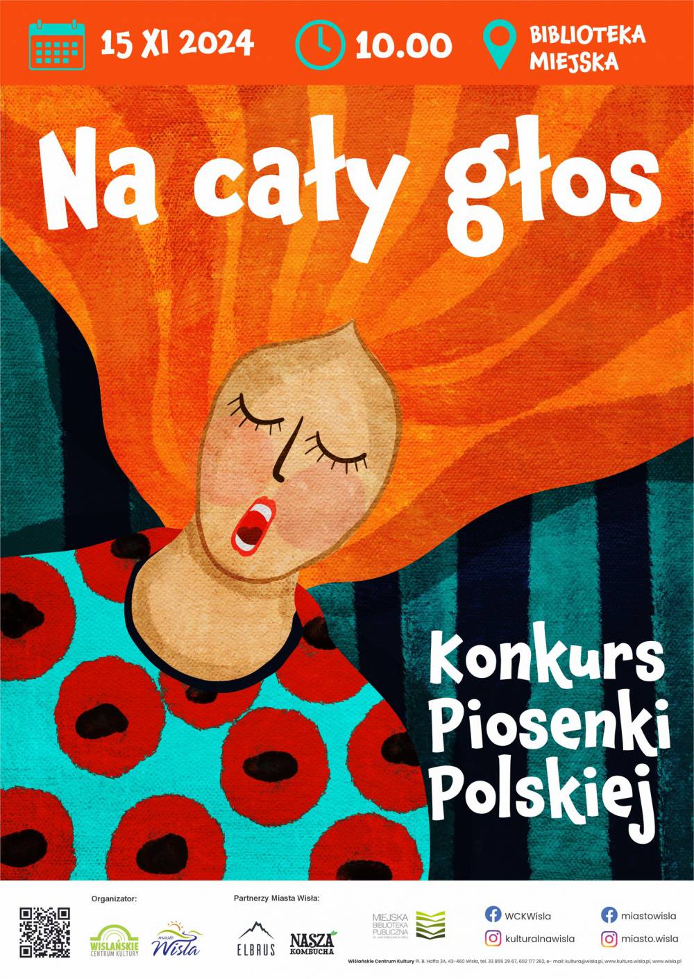 Zapraszamy serdecznie dzieci i młodzież do udziału w Konkursie Piosenki Polskiej "Na cały głos", który odbędzie się w Wiśle 15 listopada 2024 roku.