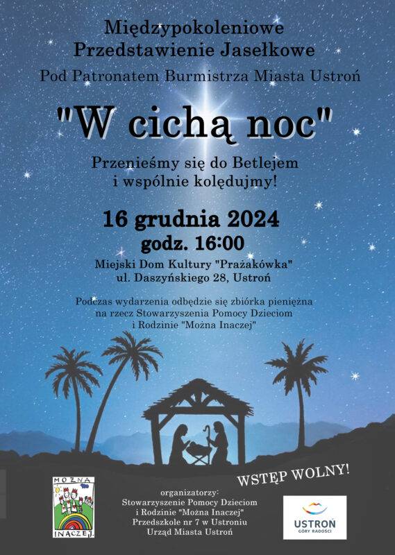 Zapraszamy wszystkich na międzypokoleniowe przedstawienie jasełkowe pod Patronatem Burmistrza Miasta Ustroń pt. "W cichą noc".