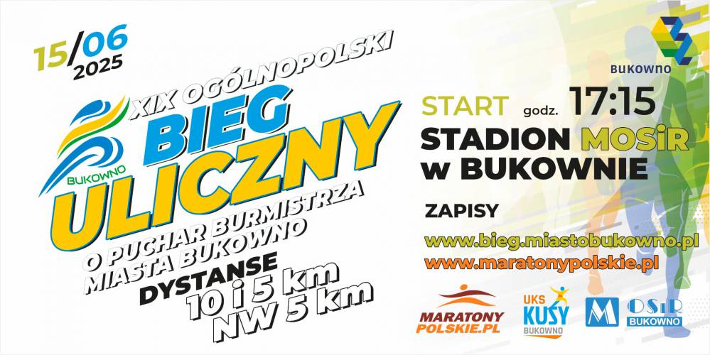 Zapisy : https://www.miastobukowno.pl/mieszkaniec/kultura-i-sport/ogolnopolski-bieg-uliczny-o-puchar-burmistrza-miasta-bukowno/xviii-ogolnopolski-bieg-uliczny-o-puchar-burmistrza-miasta-bukowno-2024