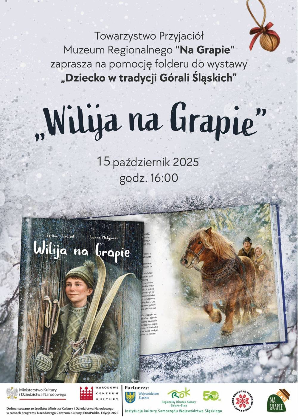 Projekt „Dziecko w tradycji górali śląskich” realizowany jest przez Towarzystwo Przyjaciół Muzeum Regionalnego na Grapie, dofinansowany ze środków Ministerstwa Kultury i Dziedzictwa Narodowego w ramach programu Narodowe Centrum Kultury EtnoPolska Edycja 2025.