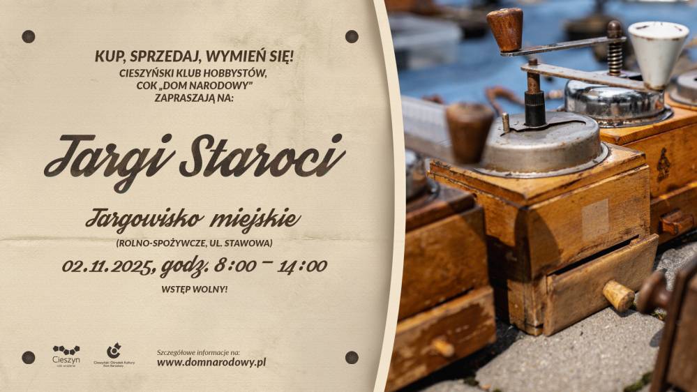 Cieszyński Ośrodek Kultury "Dom Narodowy" i Cieszyński Klub Hobbystów zapraszają na kolejną odsłonę Targów Staroci! Wydarzenie odbędzie się w pierwszą niedzielę listopada, 2.11.2025 r. w godzinach 8.00-14.00 NA TARGOWISKU MIEJSKIM (rolno-spożywczym, ul. Stawowa).