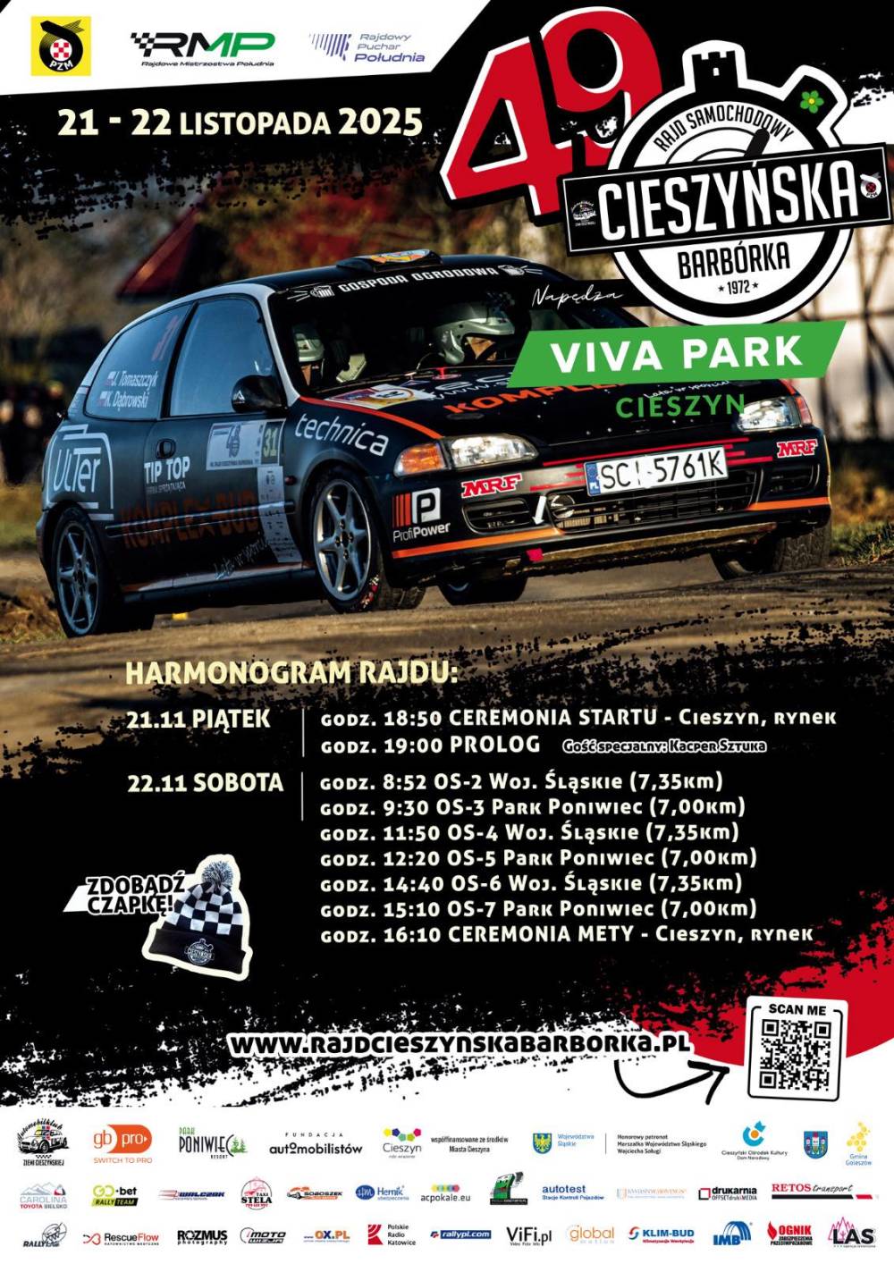 W dniach 21–22 listopada 2025 roku odbędzie się 49. edycja Cieszyńskiej Barbórki – jednej z najstarszych imprez rajdowych w Polsce. W tym roku wystartuje pod nową oficjalną nazwą, jako 49. VIVA PARK CIESZYŃSKA BARBÓRKA 2025, za sprawą partnera tytularnego, którym został VIVA PARK Cieszyn.
