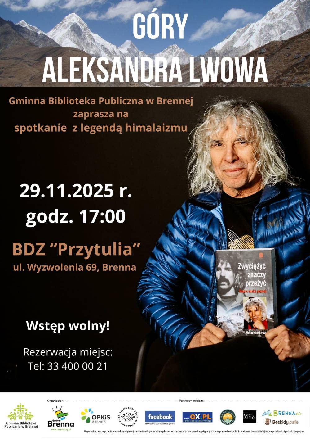 Gminna Biblioteka Publiczna w Brennej serdecznie zaprasza na spotkanie z Aleksandrem Lwowem, wybitnym alpinistą, himalaistą i autorem książki „Zwyciężyć znaczy przeżyć”.