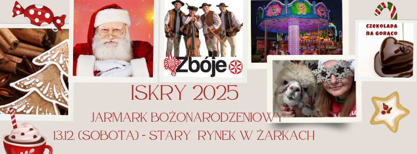 Bur­mistrz Mia­sta i Gminy Żarki Adam Za­mo­ra ser­decz­nie za­pra­sza miesz­kań­ców oraz gości do wspól­ne­go świę­to­wa­nia pod­czas ISKIER 2025 – Jar­mar­ku Bo­żo­na­ro­dze­nio­we­go, który od­bę­dzie się 13 grud­nia (so­bo­ta) na Sta­rym Rynku w Żar­kach. To wy­jąt­ko­wy czas, kiedy Żarki roz­iskrza się świą­tecz­nym bla­skiem – od żaru zi­mo­wych świa­te­łek po drob­ne iskry ra­do­ści, które łączą ludzi i tra­dy­cje. Za­pra­sza­my do współ­two­rze­nia at­mos­fe­ry, która roz­świe­tla Jurę Krakowsko-Częstochowską jesz­cze moc­niej.