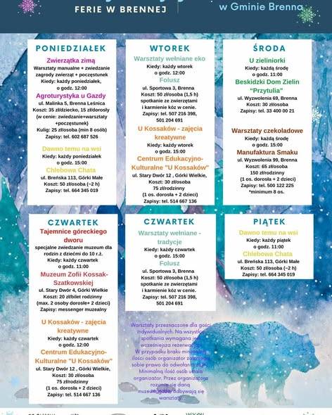 Warsztaty odbywają się w każdy wtorek i czwartek. Szczegóły na plakacie: