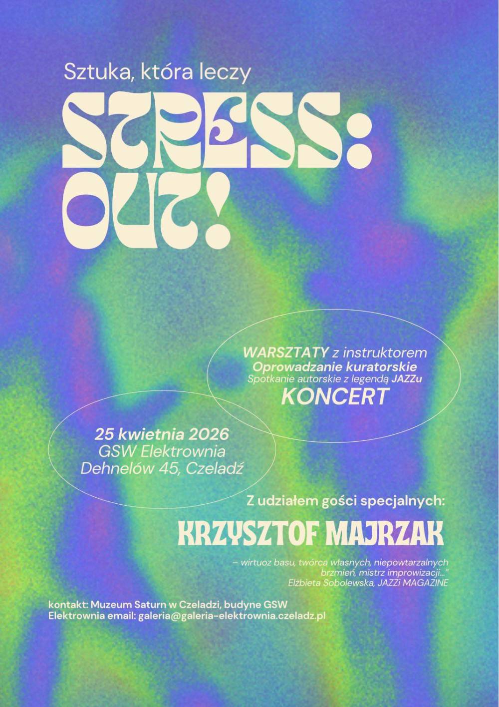 W Galeria Sztuki Współczesnej „Elektrownia” odbędzie się 25 kwietnia wydarzenie „STRESS: OUT! Sztuka, która leczy”, poświęcone redukcji stresu poprzez kontakt ze sztuką i dźwiękiem.