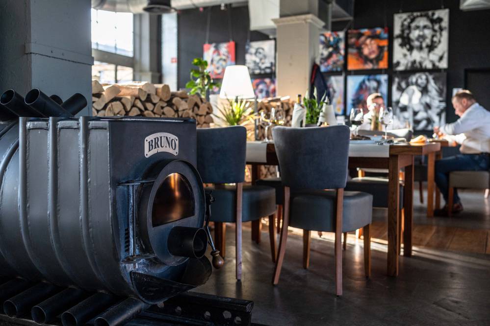 W przestronnych poprzemysłowych wnętrzach, surowe piękno produkcyjnych hal kontrastuje z czerwoną cegłą stuletnich murów, a drewno użyte przez pierwszych budowniczych wspaniale wchodzi w dyskurs z nowoczesnymi betonowymi fakturami. Artefakty przeszłości stanowią wspaniałe tło dla prezentacji nowoczesnej sztuki pochodzącej z naszej Tichauer Art Gallery. A wszystko to otulone cudownymi aromatami naszych potraw i subtelną dbałością o przemyślane szczegóły..I nawet opalany sezonowaną buczyną piec ma tu swoje imię.