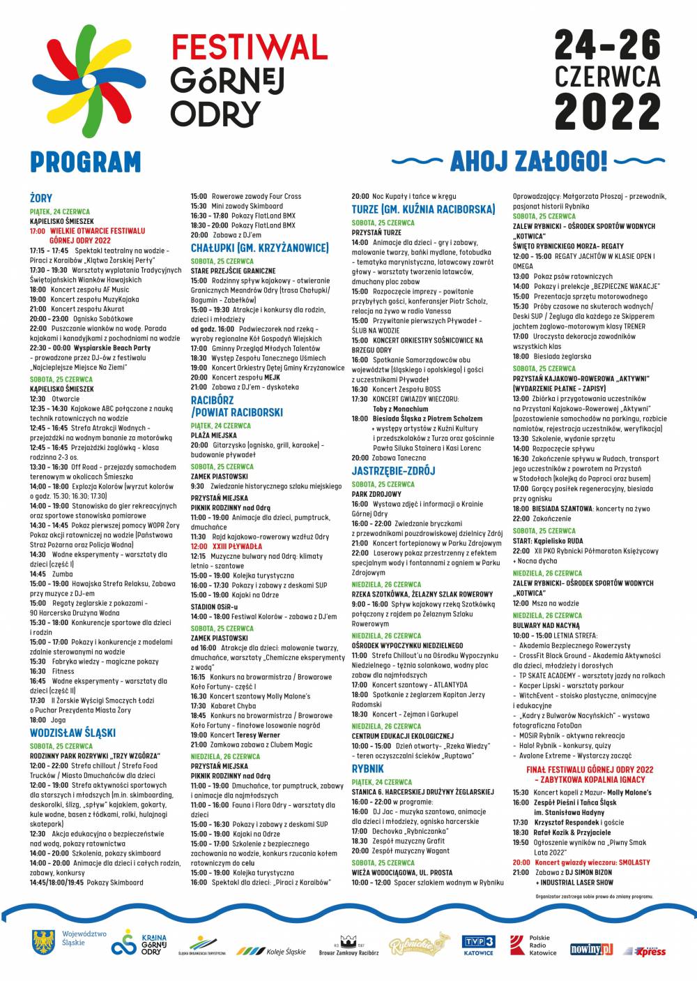 II edycja Festiwalu Górnej Odry przed nami! Już 24-26 czerwca zaczynamy zabawę na terenie Rybnika, Żor, Raciborza, Jastrzębia-Zdroju, Wodzisławia Śląskiego, Chałupek i Turza!