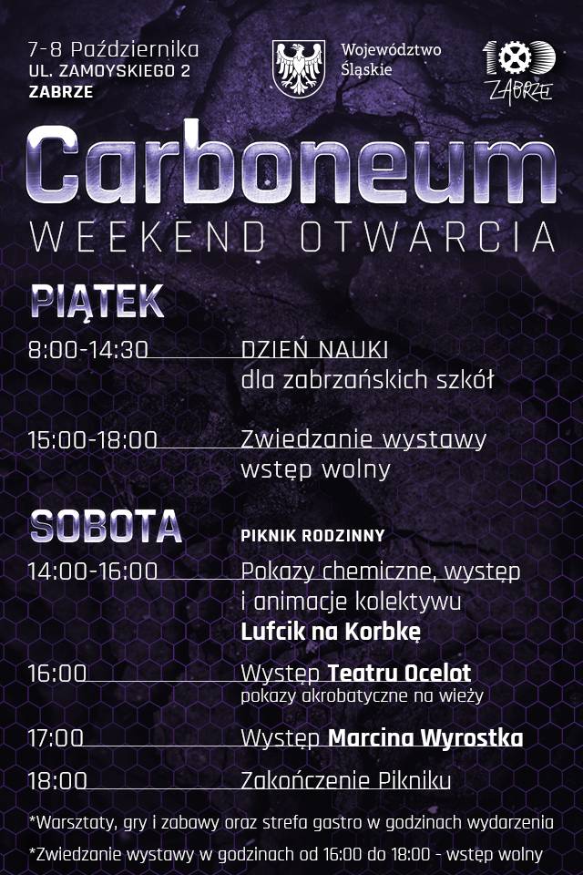 - zwiedzanie wystawy Carboneum, w godzinach 16:00 – 18:00 – wstęp wolny!