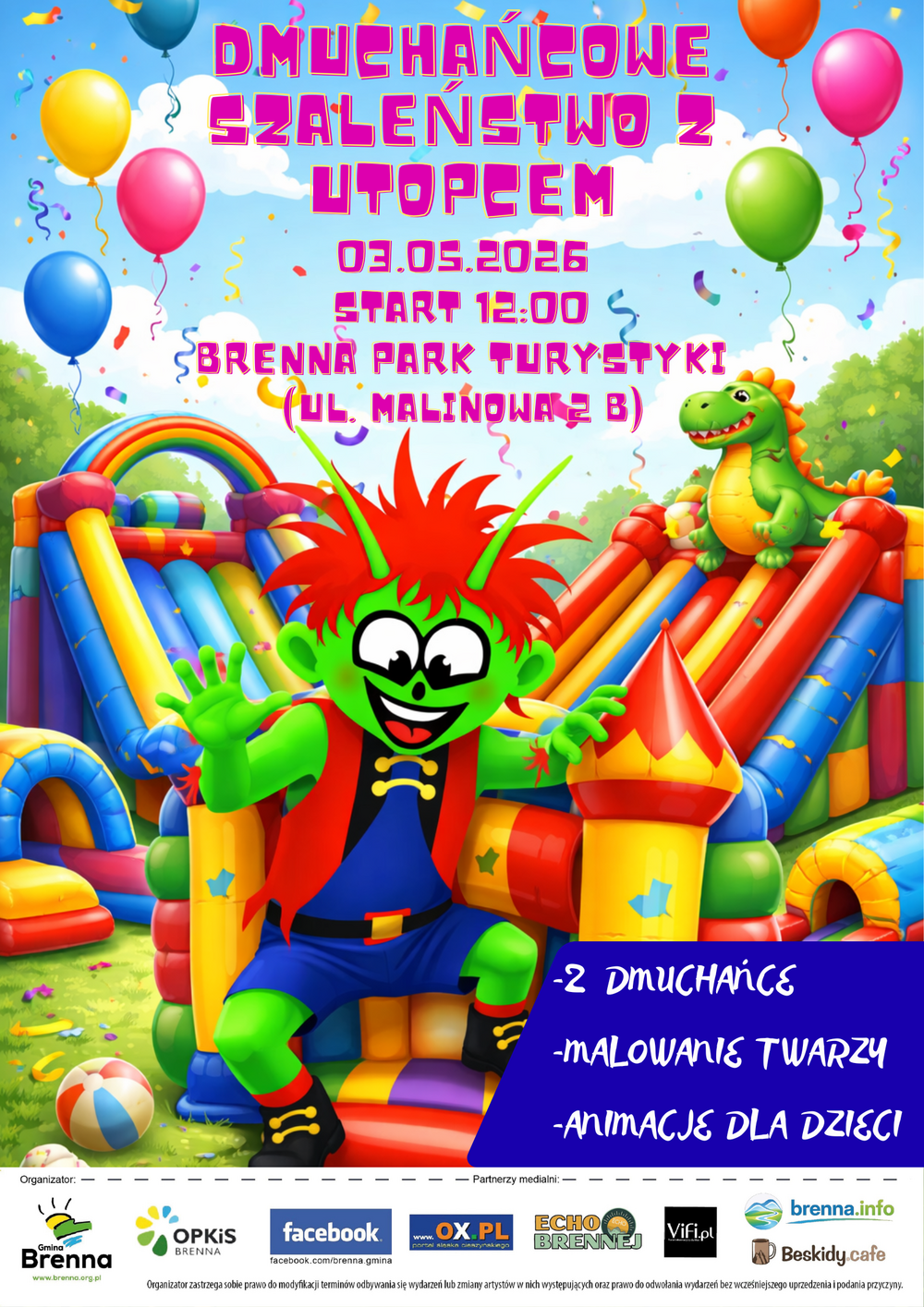 Zapraszamy najmłodszych na pełną radości zabawę na dmuchańcach z wyjątkowym gościem – Breńskim Utopcem. Czeka mnóstwo skakania, śmiechu i psot!