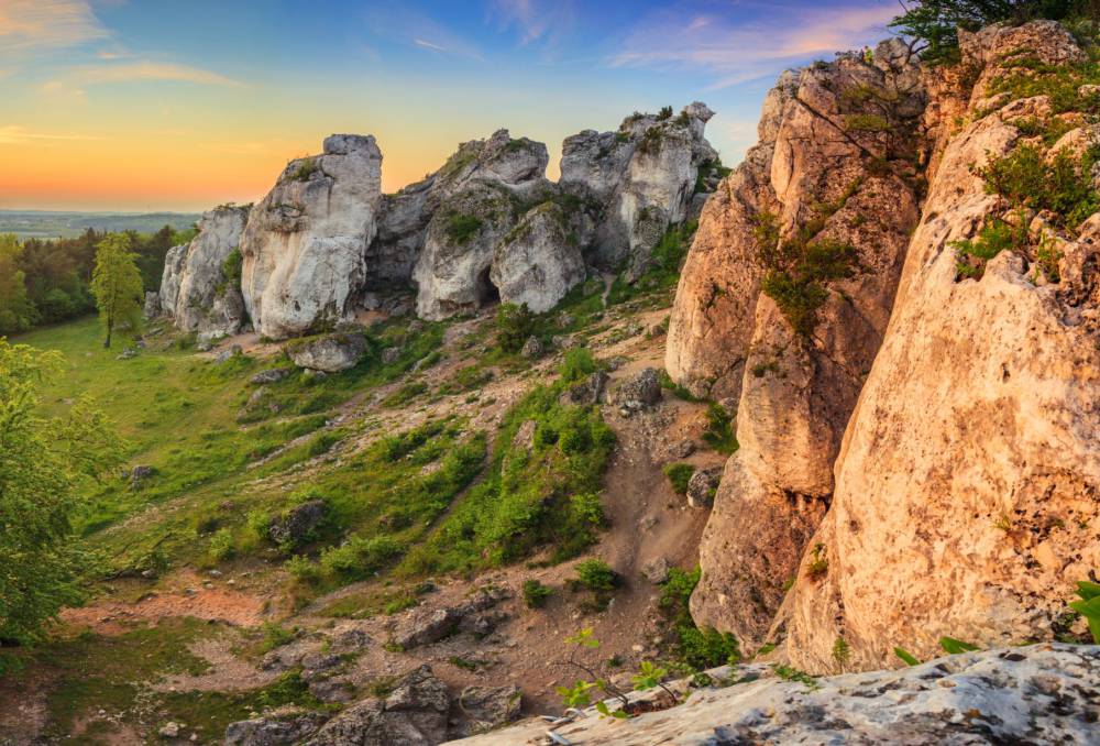 Krajobraz jurajski – grupa ostańców (skałek), jaskinie (w tym Jaskinia Głęboka udostępniona do zwiedzania)