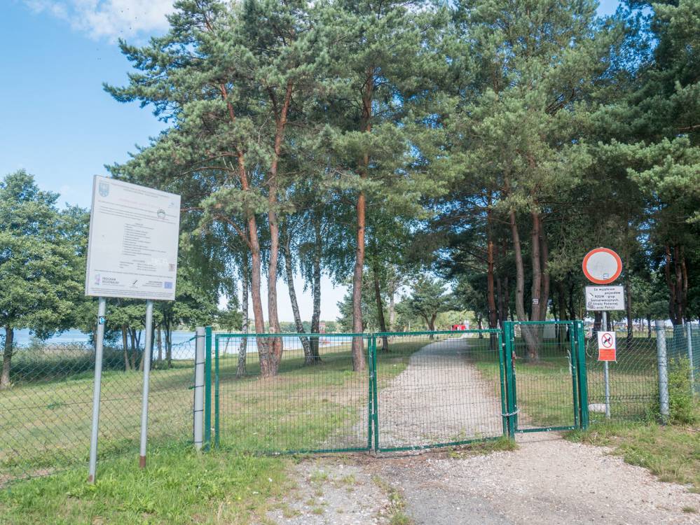 Szlak przebiega przez tereny kąpieliska z plażą nad jeziorem Pławniowickim. W sezonie letnim, kiedy wstęp na kąpielisko jest płatny to brama wjazdowa może być zamknięta. W takim wypadku należy skorzystać z objazdu przez parking (zaznaczone na mapie).