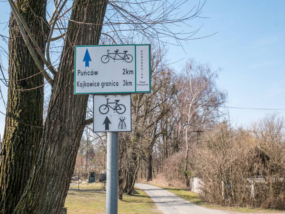 Szlak rowerowy Śladami Stroju Cieszyńskiego, oznakowanie szlaków rowerowych na trasie, fot. D. Berłowski - roweremposlasku.pl