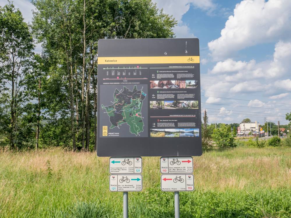 Zielony szlak 121 w Katowicach, oznakowanie, fot. Damian Berłowski - roweremposlasku.pl