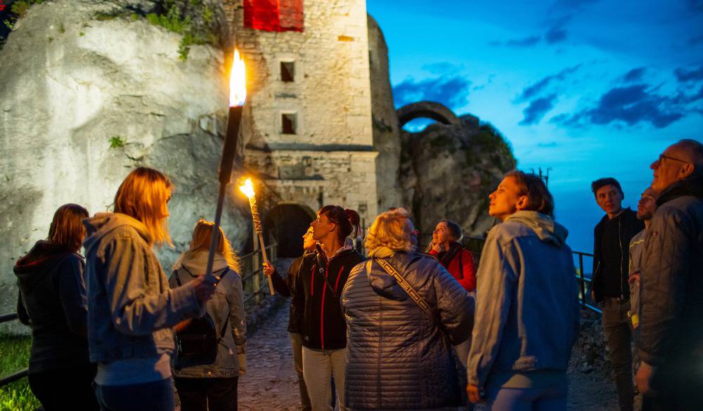 Zamek Ogrodzieniec w Podzamczu, wzniesiony za czasów króla Kazimierza Wielkiego na najwyższym wzniesieniu Jury Krakowsko-Częstochowskiej, to największy i najpopularniejszy ze wszystkich zamków na Szlaku Orlich Gniazd. Stanowi przykład kunsztu dawnych budowniczych. Dziś w ruinach zamku można organizować pełne emocji nocne zwiedzanie z duchami. Spacerowanie po ruinach przy świetle księżyca i krwistoczerwonej poświacie reflektorów, połączone z emocjonującą opowieścią przewodnika, wywołuje wśród uczestników mocne wrażenia.