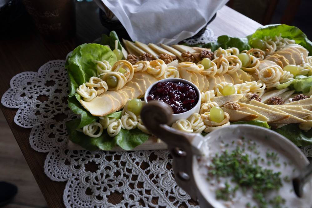 Po warsztatach przychodzi czas na góralski poczęstunek skomponowany z tradycyjnych przysmaków dostarczonych przez lokalnych dostawców. Dla smakoszy regionalnych smaków to prawdziwa uczta! Kwaśnica – najsłynniejszy w kraju góralski kapuśniak, bez warzyw (za wyjątkiem ziemniaków), za to z dodatkiem wędzonych żeberek, góralskie sery (sery z mleka owczego: oscypek, redykołka, bundz, bryndza, bryndza żywiecka oraz sery z mleka krowiego lub mieszanego: gołki, korbacze) dostarczone przez sąsiada Centrum Pasterskie oraz domowe ciasta i smalec – degustacyjny stół pachnie i sprzyja rozmowom w grupie. Spotkaniu towarzyszy inspirująca opowieść Lucyny o miejscu, które wypromowało lokalną tradycję na cały świat.