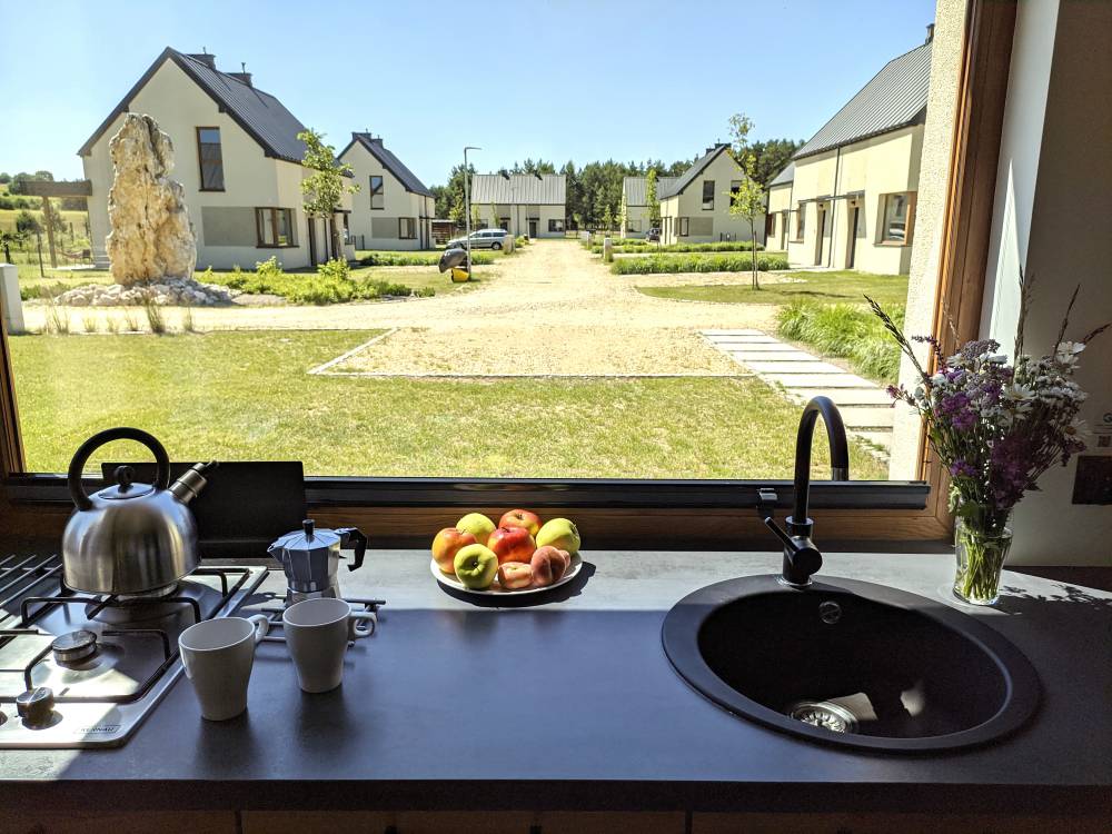 Moje Miejsce Jura to nie tylko domy z ogródkami, to również duży teren rekreacyjny, na którym Goście mogą korzystać z placu zabaw dla dzieci, boisk sportowych do gry w piłkę nożną, siatkówkę plażową oraz badmintona. Do dyspozycji jest również sezonowy basen zewnętrzny z podgrzewaną wodą oraz całoroczna sauna z balią do morsowania. Nasi Goście mogą rozpalić ognisko w jednym z miejsc do tego przygotowanych. Do ich dyspozycji jest suche drewno oraz akcesoria do pieczenia kiełbasek. W każdym z domów znajduje się grill ogrodowy. Na terenie osiedla znajduje się ogólnodostępna świetlica. Dla czworonożnych przyjaciół przygotowaliśmy psi plac zabaw - tor sprawnościowy typu agility. Można wypożyczyć rowery lub skorzystać z ogólnodostępnych hulajnóg terenowych, a w sezonie zimowym z sanek.