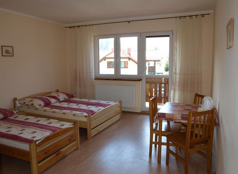 W ofercie jest apartament czteroosobowy, pokoje 2 , 3 i 4 osobowe z pełnym węzłem sanitarnym, kuchnia dla gości z kompletnym wyposażeniem, oddzielne pomieszczenie na sprzęt narciarski, parking na posesji, latem miejsce na grill.