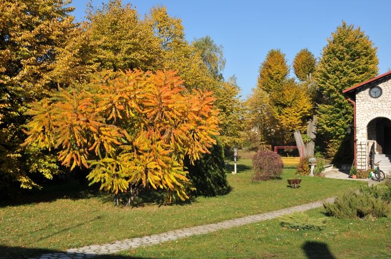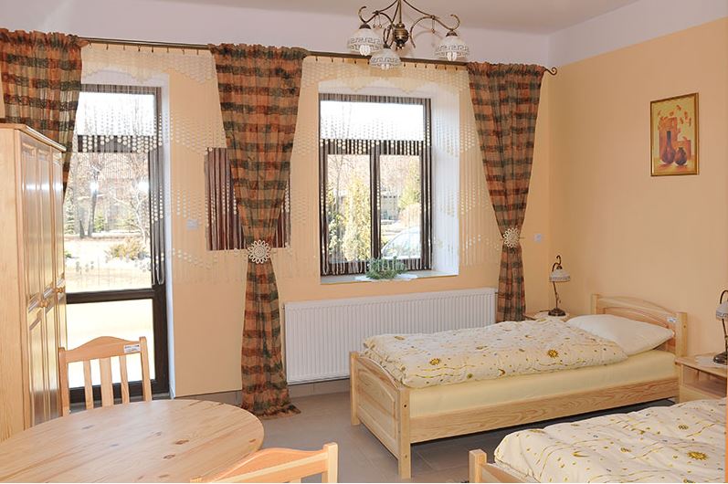 Pokoje dla gości są przygotowane w budynku oddzielnym od naszego domu, który ma piękną elewację kamienno-ceglaną, czyli doskonale się wpisuje w dziedzictwo budowlane północnej jury. Na ten moment do dyspozycji gości przygotowanych jest pięć pokoi, każdy z łazienką oraz aneks kuchenny. Każdy pokój posiada wyjście do zagospodarowanego ogrodu, rozległa działka wokół jest zagospodarowana, zadrzewiona, z ładnym ogrodem i miejscami do wypoczynku. W oddzielnym budynku jest pokój studio z łazienką i własną kuchnią. Posesja jest ogrodzona, na miejscu znajduje się parking.