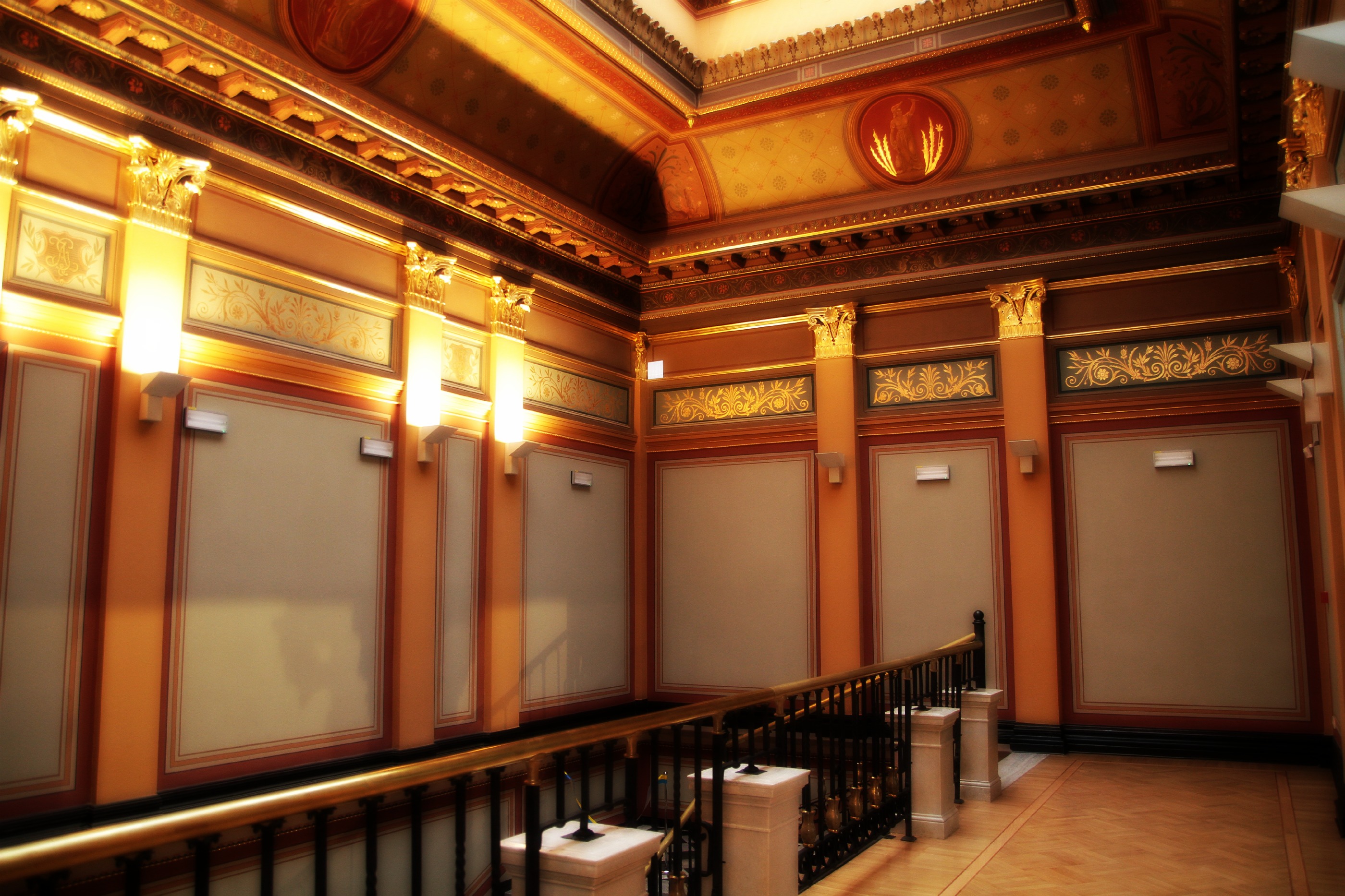 Wewnątrz budynku dawnej willi, zwanej też pałacem (plac Wolności 12A) znajduje się bogato dekorowany hall z klatką schodową. Na pierwszym piętrze kiedyś mieściła się m.in. sala balowa, a dziś sala Urzędu Stanu Cywilnego w Katowicach.