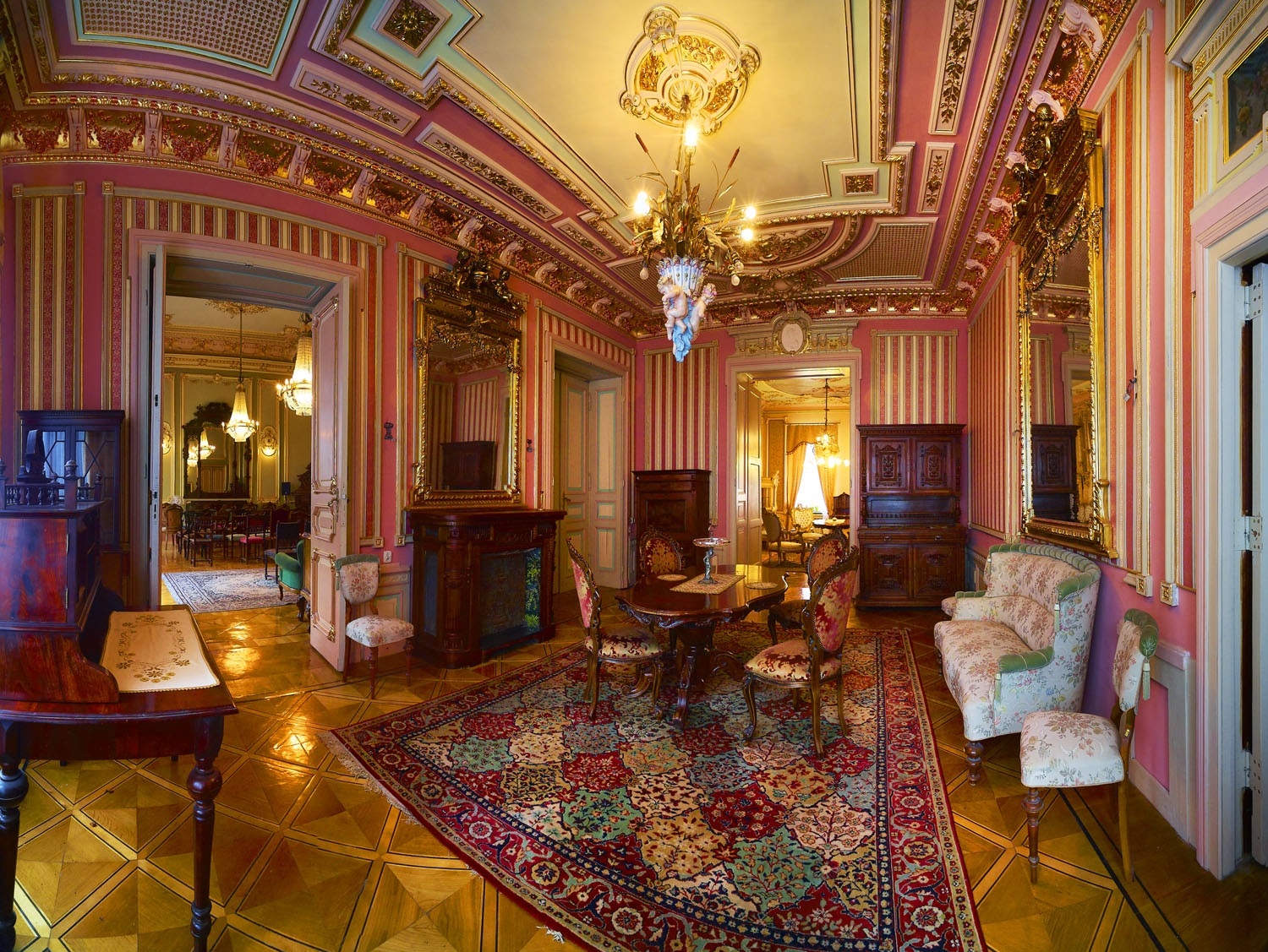 w różnych stylach architektonicznych, które nawiązują do historycyzmu. Dekoracja i wyposażenie wnętrz harmonizują z rodzajem stylu, w jakim zostały wykonane. Sale utrzymane są w stylach: neoromańskim, neobarokowym, neorokokowym, neoklasycystycznym, empirycznym i secesyjnym stanowią wędrówkę przez style i epoki. We wnętrzu pałacu znajduje się m.in. unikalny w Polsce pokój kąpielowy o pow 27m2 z bogatą ceramiczną dekoracją. Obecnie obiekt jest w rękach prywatnych. W pięknych i wyjątkowych salach Pałacu Dietla oprócz wydarzeń artystycznych organizowane są koncerty i przyjęcia okolicznościowe. Pałac jest udostępniony zwiedzającym.