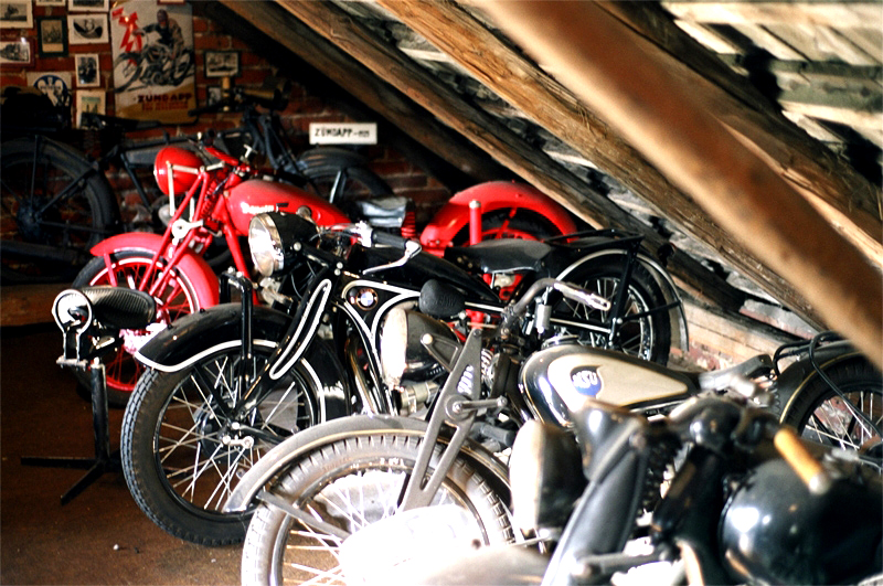 W Muzeum zgromadzono około 100 pojazdów (głównie z lat 1910-1945), z których tylko część jest w pełni odrestaurowana. Prócz nich są tu także silniki, baki i inne motocyklowe części, tablice rejestracyjne i tym podobne. Do najcenniejszych maszyn należą: Zündapp EM 250 z 1925 roku, Benelli 500 SV z końca lat 30. ubiegłego wieku, NSU 351 z roku 1936, BSA 500 z 1931, BMW R3 z 1936, Indian SV Prince, czy francuski motocykl wojskowy Gnome et Rhône, a także maszyny firm AJS, ARIEL, DKW i wielu innych.