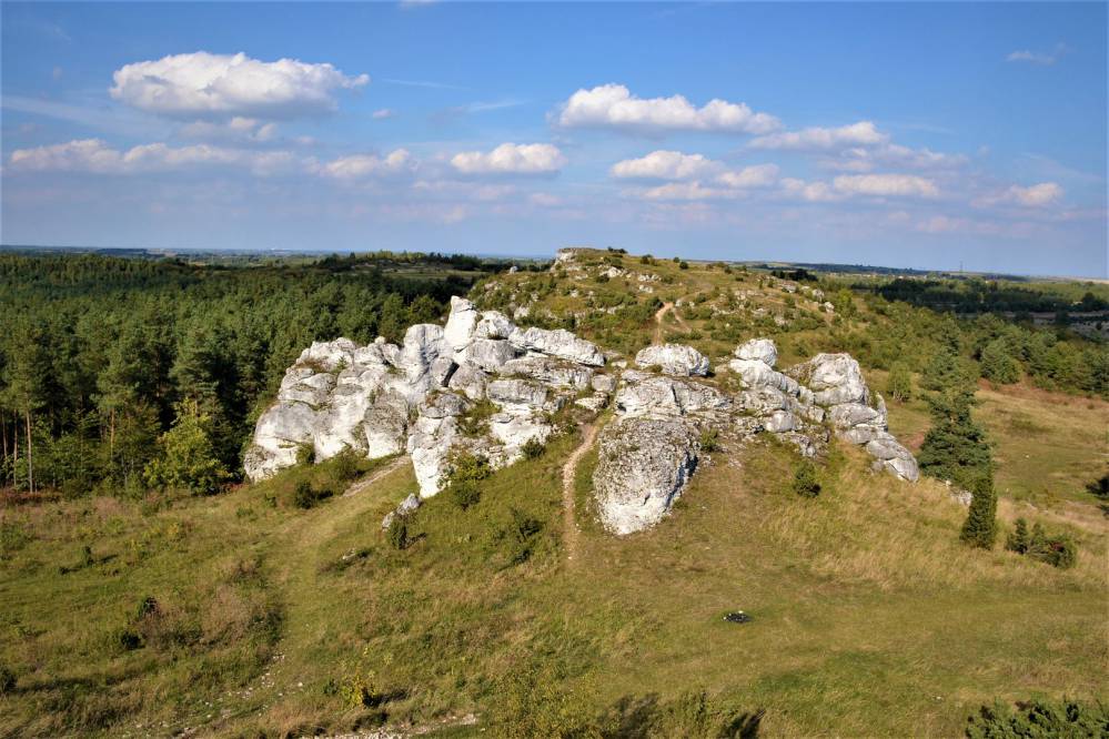 Dalej mamy Góry Towarne, czyli grupę malowniczych, pokrytych wapiennymi skałkami wzniesień, w pobliżu Olsztyna, od którego leżą około trzech km na północ. Nazwa wzgórz, określanych także jako Góry Towarnie lub Towarowe, związana jest z dawnym wykorzystaniem tutejszych jaskiń do ukrywania towarów przez karawany kupieckie podróżujące z Krakowa na północ. Tuż pod północnymi stokami wzgórz znajduje się miejscowość Kusięta, a w nim jeziorko krasowe.