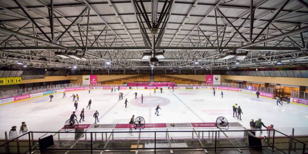 Dwa lata przed ukończeniem głównej hali oddano do użytku sztuczne lodowisko, stanowiące integralną część zespołu „Spodka".