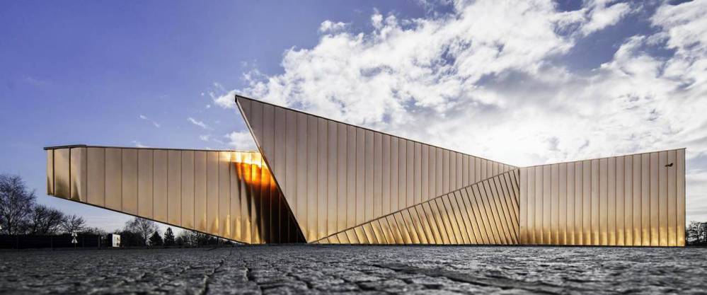 Żory, fregment miedzianej elewacji Muzeum Ognia, foto Edward Wieczorek