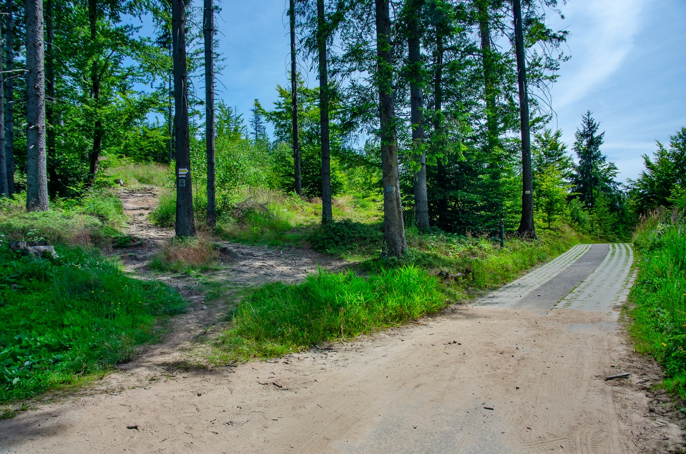 Asfaltowy szlak do schroniska na Stecówkę. Trasa dostępna dla osób z niepełnosprawnościami.