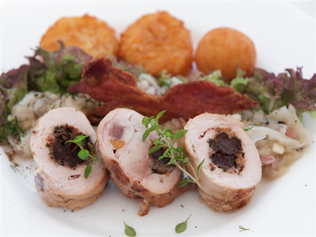 ”Śląskie niebo” to nazwa bardzo popularnej kiedyś na Śląsku potrawy z suszonych owoców przesmażonych z boczkiem. Zachęcamy do spróbowania wariacji na temat śląskiego nieba, gdzie stanowi ono nadzienie do roladek z królika. Potrawa przygotowana wg przepisu Pani Niny z Tarnowskich Gór i nagrodzona na IX Festiwalu Śląskie Smaki w Zawierciu.