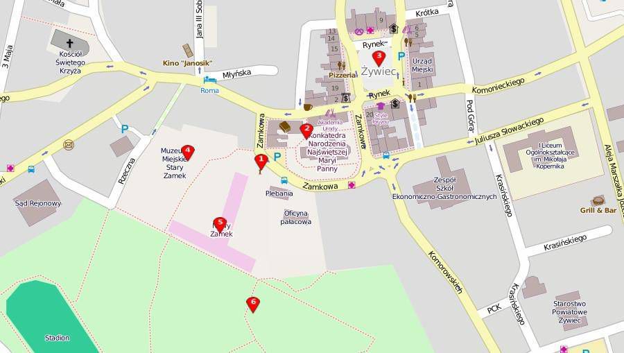 To położone wśród gór miasto ma wiele oblicz. My proponujemy spotkanie z solidnymi mieszczanami i dostojną arystokracją. Zaczynamy od miejsc, które są najważniejsze w życiu miasta: kościoła parafialnego i rynku z ratuszem. Później podziwiamy żywieckie zamki, a wytchnienie znajdujemy w parkowych alejkach.