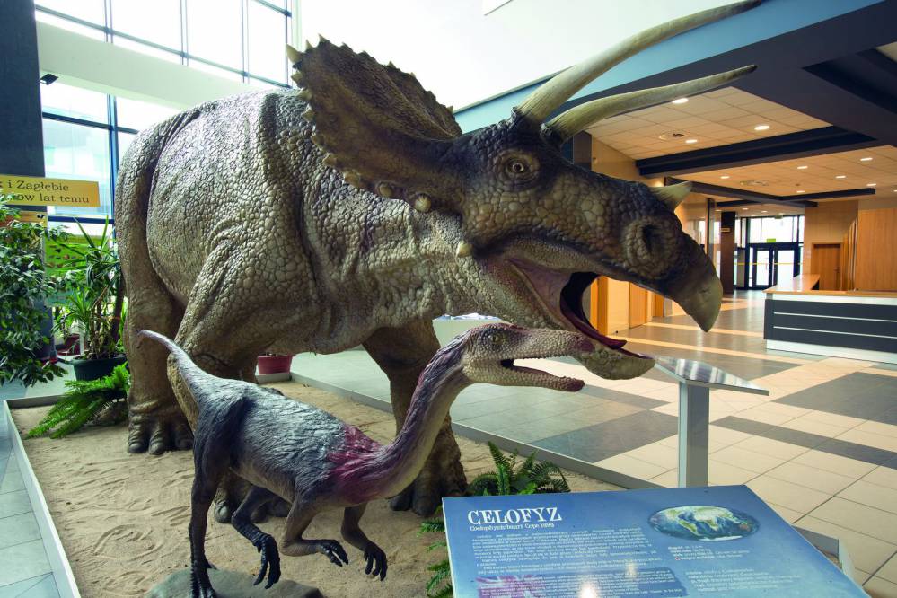 Dinozaur przed budynkiem Instytutu Nauk o Ziemi Uniwersytetu Śląskiego, fot. "Muzeum NoZ"