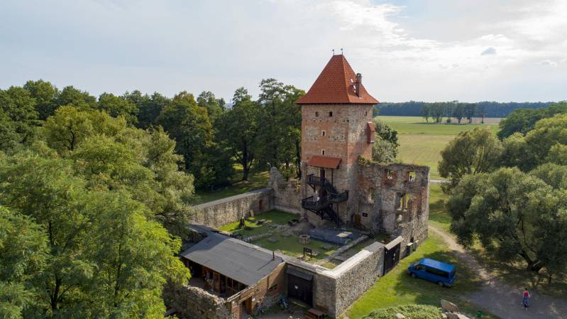 W odbudowej wieży mieści się obecnie muzeum, w którym eksponowane są zabytkowe przedmioty odnalezione podczas wykopalisk. Na terenie zamku organizowane są także imprezy plenerowe, inscenizacje historyczne, koncerty, a przede wszystkim sierpniowy Jarmark Średniowieczny. Podczas prac archeologicznych odkryto w pobliżu zamku fundamenty XIX-wiecznej karczmy-browaru.