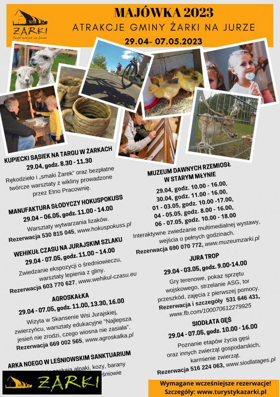 Zaplanuj wyjątkowo długi weekend majówkowy w Gminie Żarki na Jurze. Wybieraj atrakcje dla małych i dużych, na pogodę i niepogodę, zwiedzanie i kreatywne warsztaty.