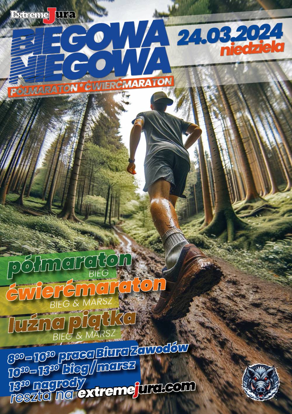 Zapraszamy do Niegowy na wymagający dla Wymagających bieg typu trail na dystansie półmaratonu, ćwierćmaratonu oraz bieg zakwalifikowany jako luźna piątka. Tak jak półmaraton jest przeznaczony do biegania, tak pozostałe dystanse będą uzupełnione o konkurencje marszu nordic walking.
